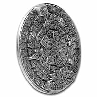 **Product Details:** Presenting the Aztec Sun Stone Stackable, a creation from the makers of the Doggaebi Shield Stackable. This design draws inspiration from the Aztec Sun Stone, also known as the Calendar Stone, showcasing mythological worlds from Aztec history. **Medal Highlights:** - Contains 2 oz of .999 fine Silver. - Light antiquing provides a subtle finish, concealing any potential spots or scratches resulting from stacking. - Stackable format is housed in a protective capsule. - Minted in South Korea. - Obverse: The front side replicates the Sun Stone's ornate mythological depictions, resembling the original solar disk that symbolized rulership in Aztec and Mesoamerican cultures. - Reverse: The backside of the Sun Stone is incused, allowing multiple pieces to neatly stack within one another. Expand your Silver portfolio and acquire a realistic rendition of the Aztec Sun Stone! Secure your stackable sun stone by adding it to your cart today! **Aztec Sun Stone:** Unearthed in 1790 CE at the central plaza of Mexico City, this intricately carved basalt stone originated as a part of the Temple Mayor. Initially positioned flat on the ground, the stone likely served as a site for sacrificial rituals. At its center, the stone features a face representing several solar gods, surrounded by additional sun gods at four points. Currently housed in the National Museum of Anthropology in Mexico City, the Sun Stone remains a captivating artifact, preserving the rich cultural heritage of the Aztec civilization.