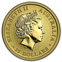 Product Information The Gold Kangaroo and Nugget series stands out as one of the few major Gold bullion coins that undergoes an annual design change, enhancing its allure with a touch of collectibility to its .9999 fine Gold composition. Key Features: - Contains 1/10 oz of .999 fine Gold. - Each individual coin is securely housed in protective packaging. - Front: Showcasing the Ian Rank-Broadley likeness of Queen Elizabeth II, alongside the coin's monetary denomination. - Back: Design varies each year, featuring the date, weight, and purity. - Issued as a sovereign coin under the guarantee of the Australian government. Not only do the Gold Kangaroo and Nugget coins boast a timeless design, but they are also produced in limited mintages, offering an excellent opportunity for collectors. Include these exquisite Gold coins in your order today! Please note that for random year coins, the dates will be selected by us based on available stock and may or may not vary.