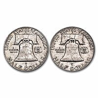 Details: Celebrate one of America's renowned inventors, Benjamin Franklin, through this evocative and brief Silver series. The globally recognized design featuring the Liberty Bell pays homage to an integral part of American history. Product Highlights: Approximately .715 oz of Silver. Each $1.00 face value bag includes 2 Franklin Half Dollars. Obverse: John Sinnock's portrayal of Benjamin Franklin with "Liberty" above and "In God We Trust" below. Reverse: The Liberty Bell depicted with a small eagle to the right, meeting the requirement for half dollars to showcase an eagle. All coins are dated between 1948 and 1963. These $1.00 face value bags provide an excellent opportunity to infuse Silver into your investment portfolio. Choose to add multiple $1.00 face value bags of 90% Silver Franklin Halves to your collection today! Please note that the years will be selected based on our current stock availability. Pre-1965 90% Silver coins, often referred to as junk Silver or scrap Silver, serve as a solid foundation for initiating Silver investments. These coins were withdrawn from circulation as copper/nickel clad coins emerged, and the demand for Silver surged. Savvy individuals saved them for their 90% Silver content, creating a reliable reserve for unforeseen circumstances.