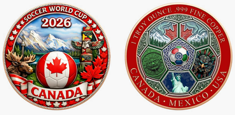 1oz 2026 World Cup Canada Round Copper