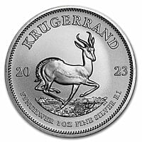 Product Description: The globally cherished South African Krugerrand coin continues its legacy with the 2023 edition in Brilliant Uncirculated condition, offering a superb addition to any collection or portfolio. Key Features: - Contains 1 oz of .999 fine Silver. - Multiples of 25 are thoughtfully packaged in tubes, while multiples of 500 are securely housed in Monster Boxes. Other quantities come in protective packaging or capsules. - Obverse: Features the likeness of Paul Kruger, South Africa's inaugural and sole president, accompanied by the inscriptions "South Africa" in both Afrikaans and English. - Reverse: Showcases a springbok antelope, South Africa's national animal, alongside the year of minting, face value, and Silver weight. - Guaranteed by the South African Mint. In its sixth year of release, this Brilliant Uncirculated Silver coin from the South African Mint has gained widespread popularity among both investors and collectors. The Silver Krugerrand shares the iconic design of its beloved Gold counterpart, maintaining the same timeless aesthetic since its introduction in 1967. The obverse depicts the esteemed figure of Paul Kruger, while the reverse features the national animal, the springbok, along with the minting date. About the South African Mint: Celebrating the Golden Jubilee, the South African Mint expanded its portfolio by introducing the Silver bullion coin. During the Jubilee preparations, designers meticulously examined the Krugerrand design, discovering some lost artistic details. Leveraging modern technology, these details were reinstated, enhancing the Krugerrand's overall beauty. Secure the 2023 South African 1 oz Silver Krugerrand coin for your collection or investment portfolio today!