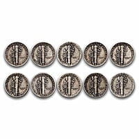 Details: Embark on your Silver investment journey with these 10-coin, $1 face value bags of Mercury dimes—an excellent starting point with enhanced collectability due to their historical significance. Product Highlights: Contains approximately .715 oz of Silver. Obverse: Adolph Weinman’s portrayal of Lady Liberty adorned with a Phrygian cap, a quintessential Western symbol of liberty and freedom. The cap's wings symbolize the freedom of thought. Reverse: A fasces paired with an olive branch, symbolizing America's preparedness for war and its aspiration for peace. All coins are dated from 1916 to 1945. These $1 face value bags are a superb method to infuse Silver into any investment portfolio. Seize the opportunity and add multiple $1 Face Value bags of 90% Silver Mercury Dimes to your collection today! Pre-1965 90% Silver coins, often colloquially known as junk Silver or scrap Silver, serve as an ideal entry point for commencing Silver investments. Withdrawn from circulation due to the advent of copper/nickel clad coins and the surging demand for Silver, these coins were diligently preserved by the public for their 90% Silver content, creating a dependable reserve for unforeseen circumstances.