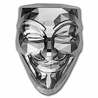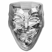**Product Details:** Introducing the Guy Fawkes Mask Stackable, a distinctive creation from the same makers of the Doggaebi Shield Stackable. This stacker features a polygonal design, portraying Guy Fawkes, "The Rebel." **Product Highlights:** - Contains 2 oz of .999 fine silver. - Light antiquing provides a subtle finish, concealing any potential spots or scratches resulting from stacking. - Stackable format is securely encased in a protective capsule. - Minted in South Korea. - Obverse: The front side showcases a forward-facing polygonal mask, capturing the likeness of Guy Fawkes. - Reverse: The incused flip side of the polygonal mask is meticulously crafted for snug stacking. Expand your silver holdings with this unique Guy Fawkes Mask! Enhance your collection with one of these 2 oz Silver Stackable Guy Fawkes Masks by adding it to your cart today! **Guy Fawkes, "The Rebel":** Also known as Guido Fawkes, Guy Fawkes was a key figure in the Spanish conflict and played a role in the Gunpowder Plot of 1605. The mask bearing his likeness has evolved into a symbol of postmodern anarchism, representing resistance against governments and monopolies. Often donned during protests worldwide, the Guy Fawkes mask stands as an iconic emblem of defiance.