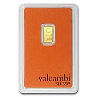 **Product Details:** These refined 1 gram Gold bars, boasting a .9999 fine Gold purity, exude sophistication with a contemporary design and a lustrous mirrored finish. Each bar is accompanied by a tamper-evident packaging that includes an authenticity-certifying assay card, delivering both safeguarding and assurance of quality for every individual bar. **Bar Highlights:** - Comprises 1 gram (0.0321 oz) of .9999 fine Gold. - Presented in a securely sealed assay package, providing comprehensive details of the bar's weight and authentication by the assayer. - Eligible for inclusion in Precious Metals IRAs. - Obverse: Showcases a singular stamped Valcambi logo, accompanied by weight and purity specifications. - Reverse: Features the elegant inscription "Valcambi Suisse" stamped with refined simplicity. - Valcambi, a distinguished Swiss refiner, is renowned for its exceptional craftsmanship. Valcambi's reputation for quality and precision is exemplified in these Gold bars, offering an affordable option for both seasoned and novice investors alike. Secure this 1 gram Valcambi Gold bar for your collection today!