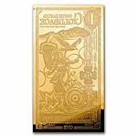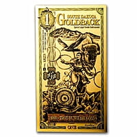 **Product Description:** Introducing Wyoming Goldback foil notes, featuring 1/1000 oz of .999 fine Gold, representing a groundbreaking achievement as the inaugural local, voluntary currency crafted from tangible, alluring gold. **Currency Features:** - Contains 1/1000 oz (0.001 oz) of .999 fine Gold. - Front: Each 1 South Dakota Goldback note showcases a depiction of Pax, the Roman goddess of peace, holding a group of five rings. She is surrounded by a diverse array of animals, with flowers at the bottom and a mountain range completing the design atop the note. - Reverse: Unembellished. - Not officially recognized as legal tender. - Crafted in the United States. This inventive method of owning Gold offers an opportunity to diversify your wealth at an affordable price point. Seize the moment and add this unique Gold note to your collection today! **Foil Notes:** These distinctive foil notes encapsulate a precise quantity of Gold or Silver between layers of durable polyester. In this format, Gold or Silver becomes more accessible, cost-effective, versatile, and dependable than ever before. Each foil note undergoes meticulous verification through rigorous testing by both the manufacturer and independent laboratories. **Goldbacks:** Each Goldback aspires to be the premier physical currency for preserving value. The ultimate goal is to empower individuals to confidently make payments for anything using the Goldback, highlighting its versatility and intrinsic value in various transactions.